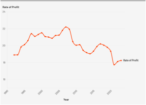 முதலீட்டில் இந்த மந்தநிலைக்கு என்ன காரணம்? அதை கண்டு பிடிக்க, நாம் பொருளாதாரத்தில் லாப விகிதத்தைப் பார்க்க வேண்டும். “மூலதனம்” புத்தகத்தில் மார்க்ஸ் குறிப்பிட்டுள்ளதுபடி, “லாப விகிதம்” தான் முதலாளித்துவ பொருளாதாரத்தில், மூலதன திரட்சியின் பிரதான உந்து சக்தி ஆகும்.